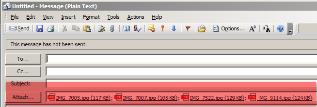 Fig.6 Résultat dans Outlook : toutes les images sélectionnées sont bien là.