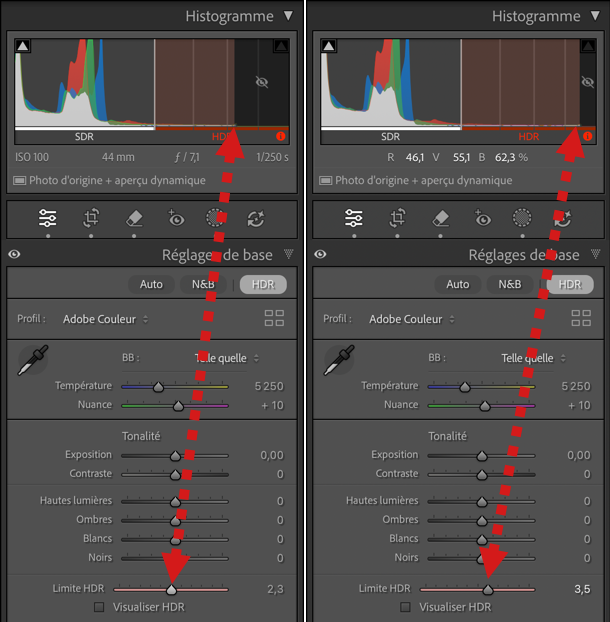 Le curseur Limite HDR, ici dans Lightroom Classic.