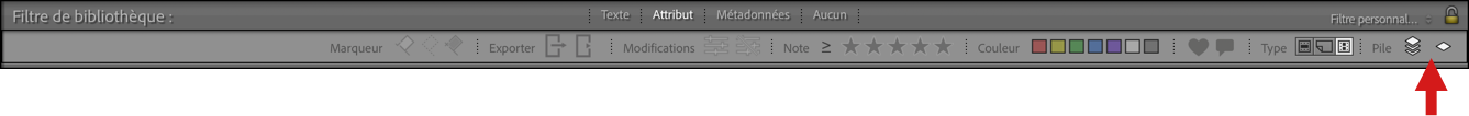 - La section Attribut du filtre bibliothèque permet de filtrer directement les piles et les images non-empilées.